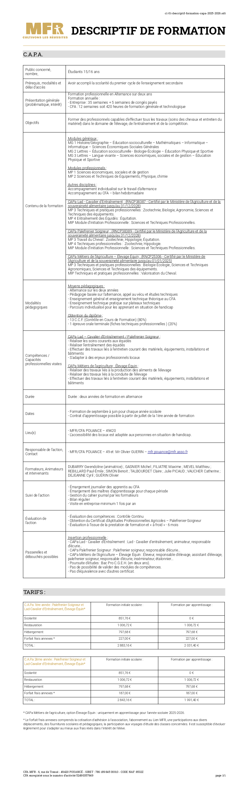 MFR Maison Familiale Rurale de Pouancé © 2025. MFR de Pouancé